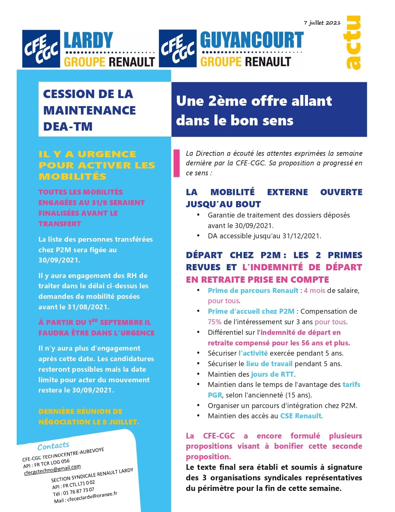 CESSION DE LA MAINTENANCE DEA-TM : Une 2ème offre allant dans le bon sens