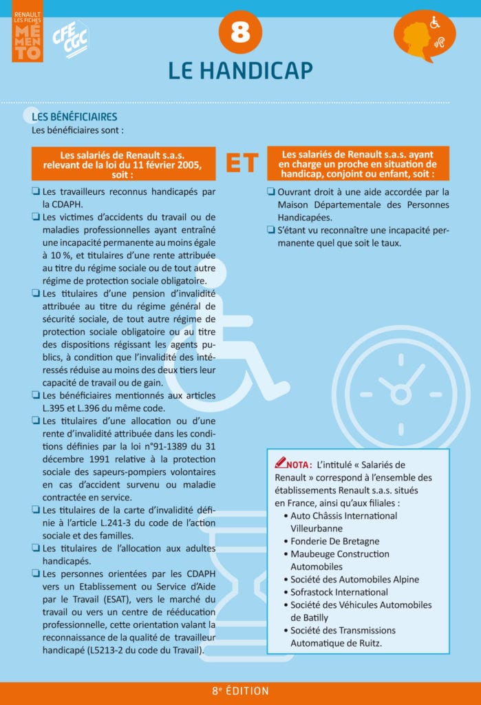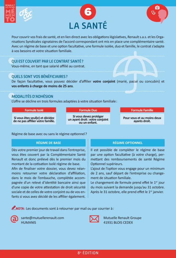 La nouvelle édition 2018 de notre mémento vous permet de connaître les dernières évolutions de la couverture sociale chez Renault s.a.s.. Ainsi, les fiches pratiques que nous éditons vous donnent sur chaque thème les derniers textes négociés sur la couverture sociale des salariés de Renault s.a.s..
